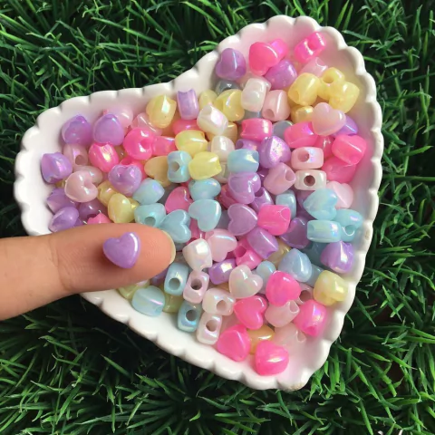 - > Miçanga Coração Irisado Candy Colors 8mm